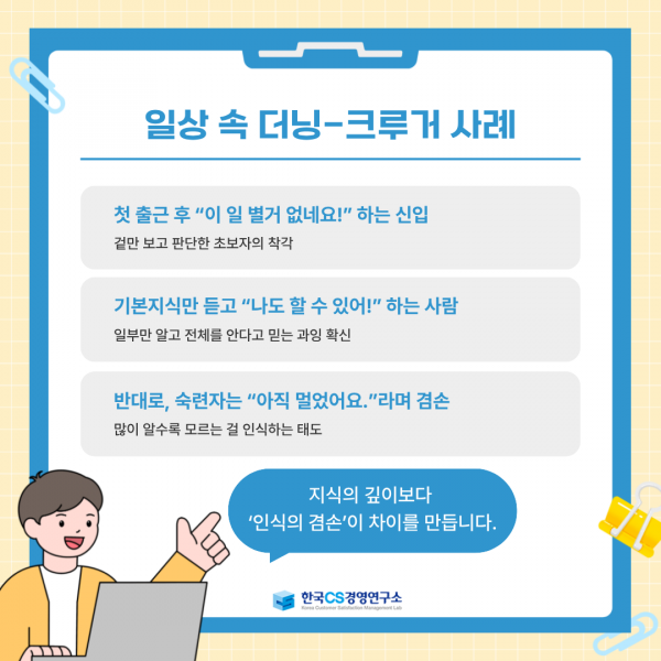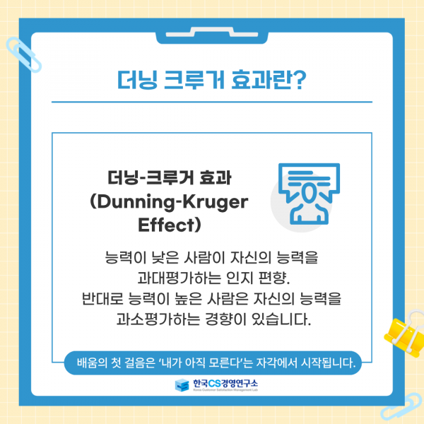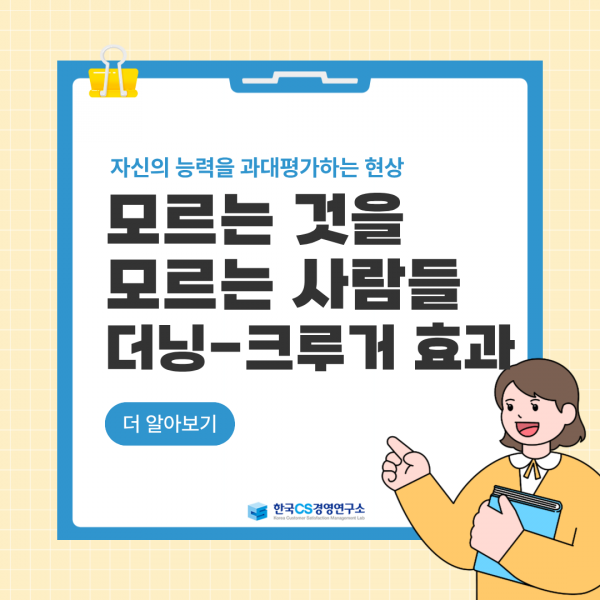 [한국CS경영연구소] 모르는 것을 모르는 사람들 '더닝-크루거 효과' 페이지 정보 작성자 최고관리자 작성일 25-10-10 13:35 조회 8회 댓글 0건 본문 목록 댓글목록 0 댓글목록 등록된 댓글이 없습니다.