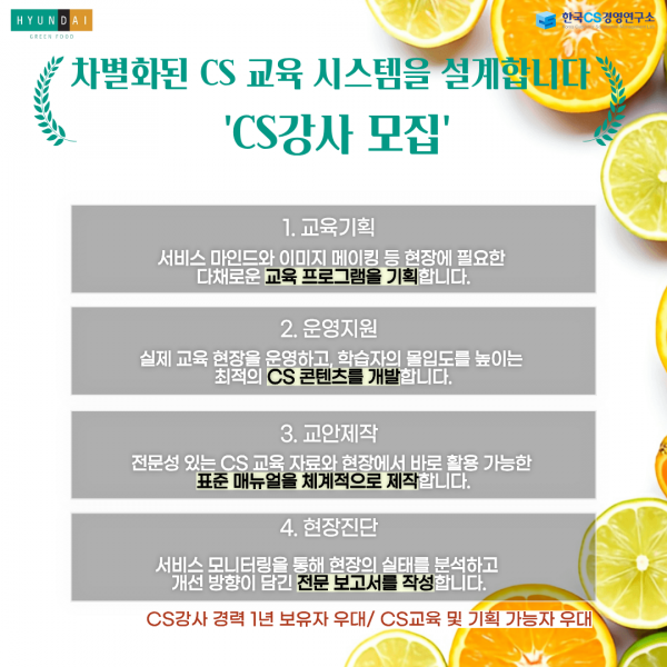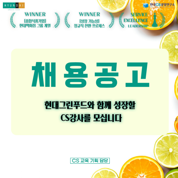 [한국CS경영연구소] 채용공고 '현대그린푸드CS강사'