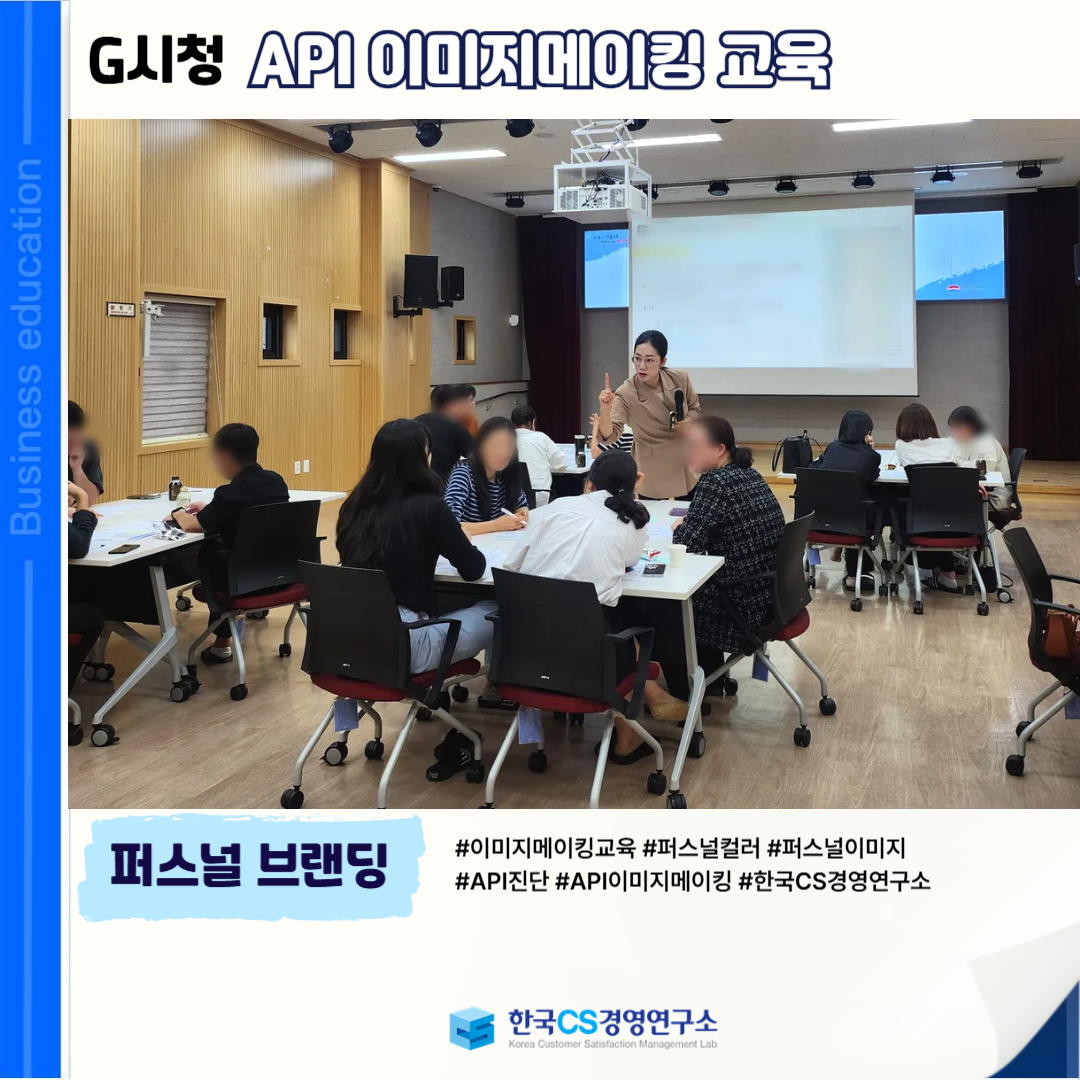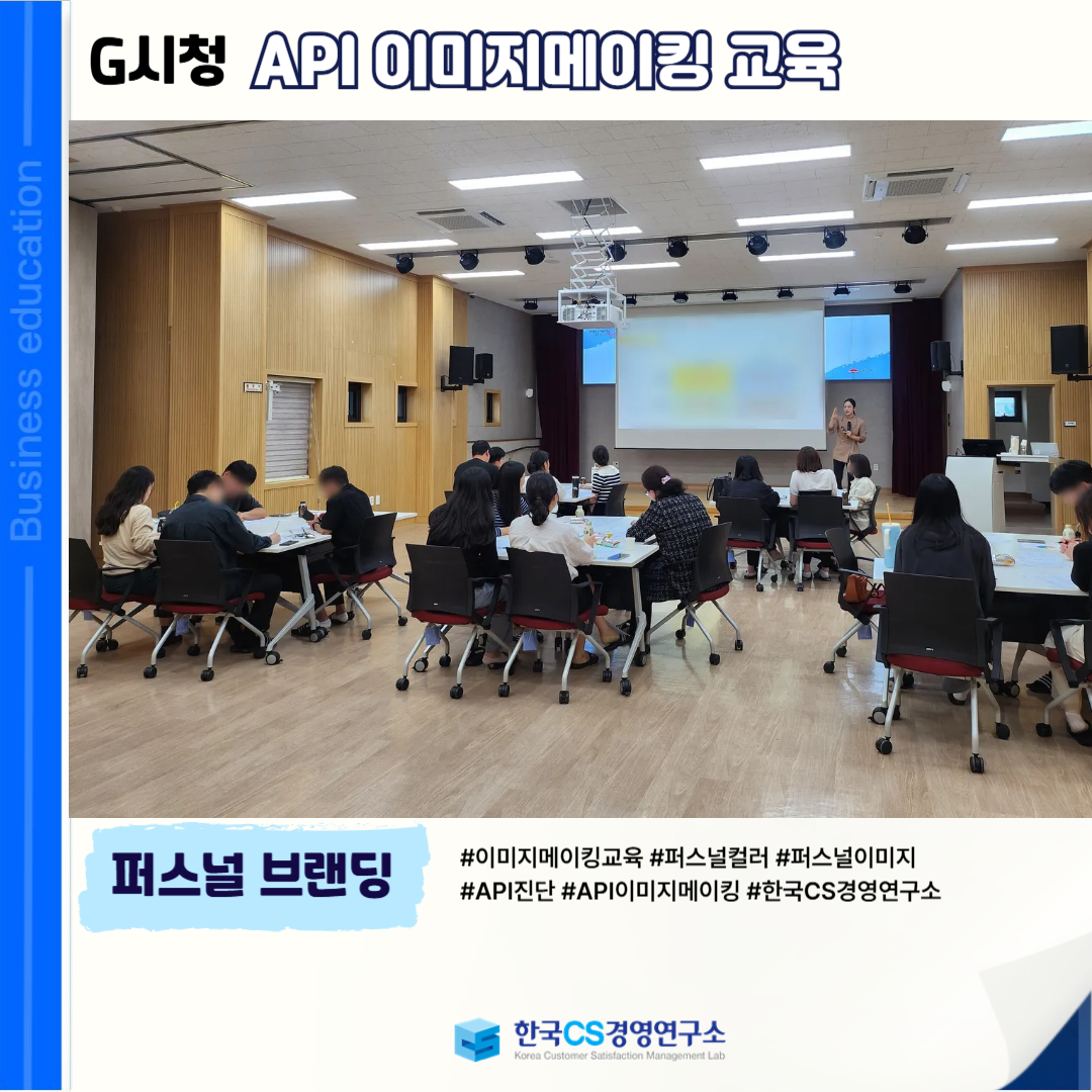 <G시청> 직원분들과 함께 개인의 강점과 개성을 효과적으로 표현하고, 외적‧내적 이미지를 전략적으로 관리하여 신뢰감 있고 매력적인 인상을 구축할 수 있도록 'API 이미지메이킹 교육'을 진행하였습니다.