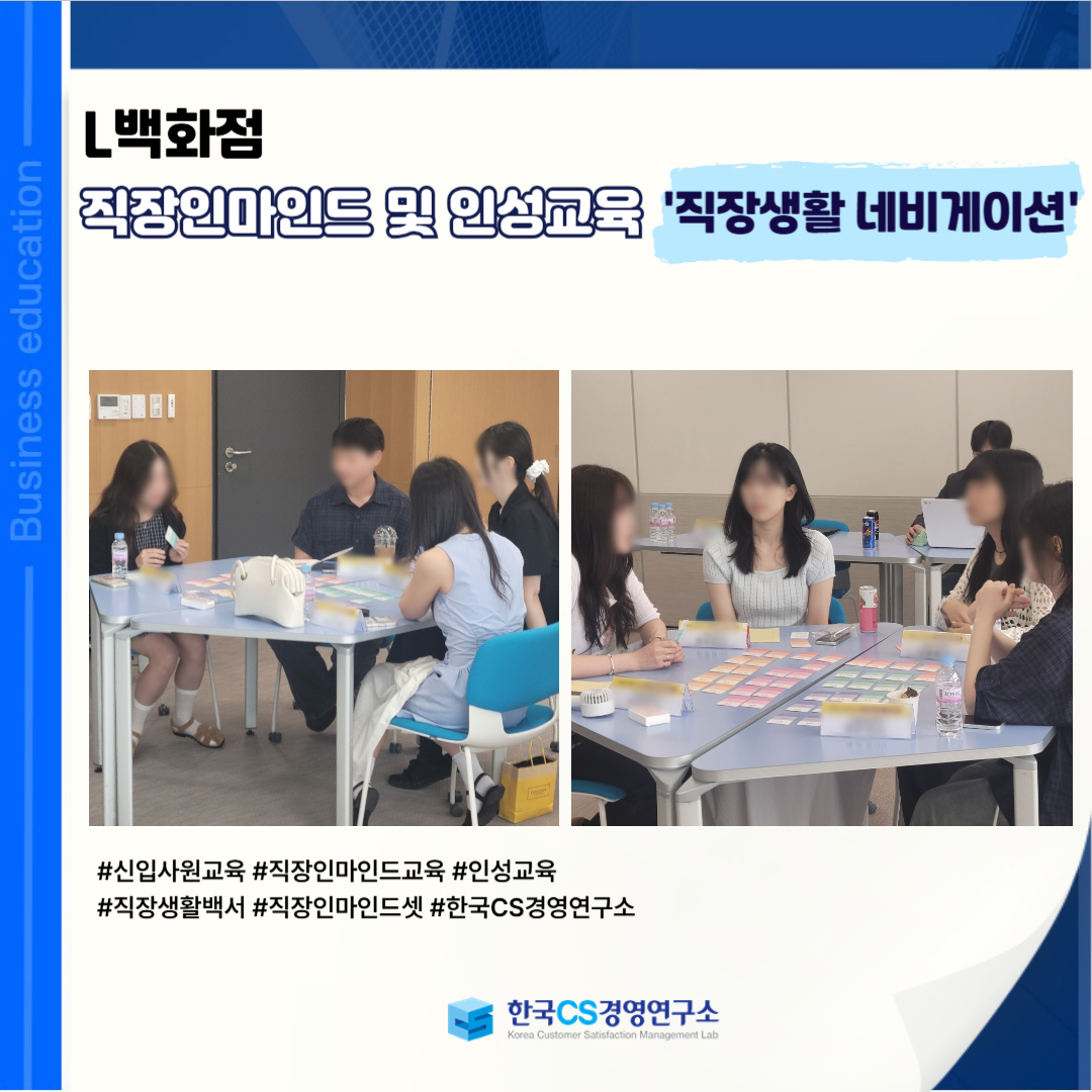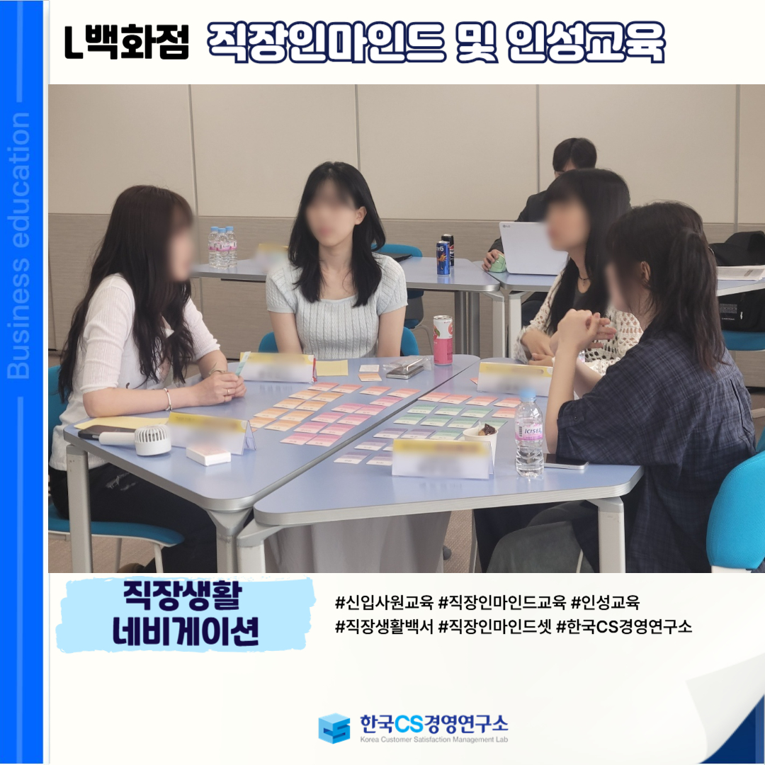 <L백화점>에서 초년차 직원들을 대상으로 올바른 직장 태도와 조직 적응력 향상을 위한 '직장인마인드 및 인성교육'을 진행하였습니다!