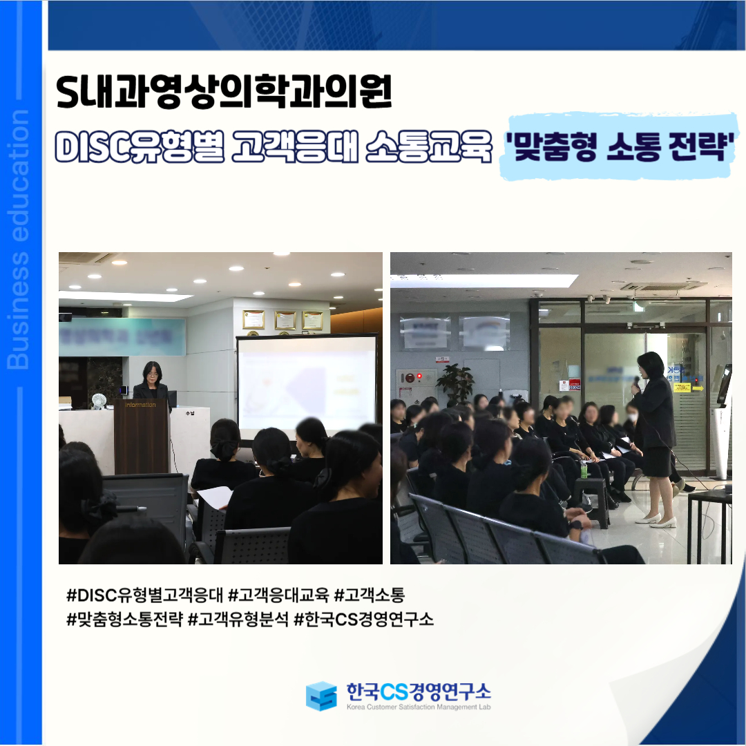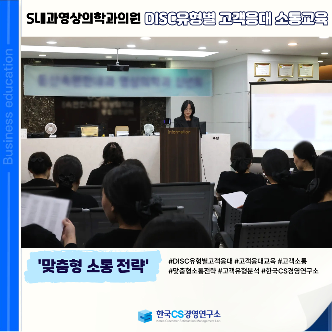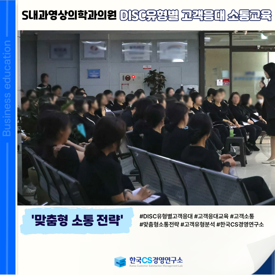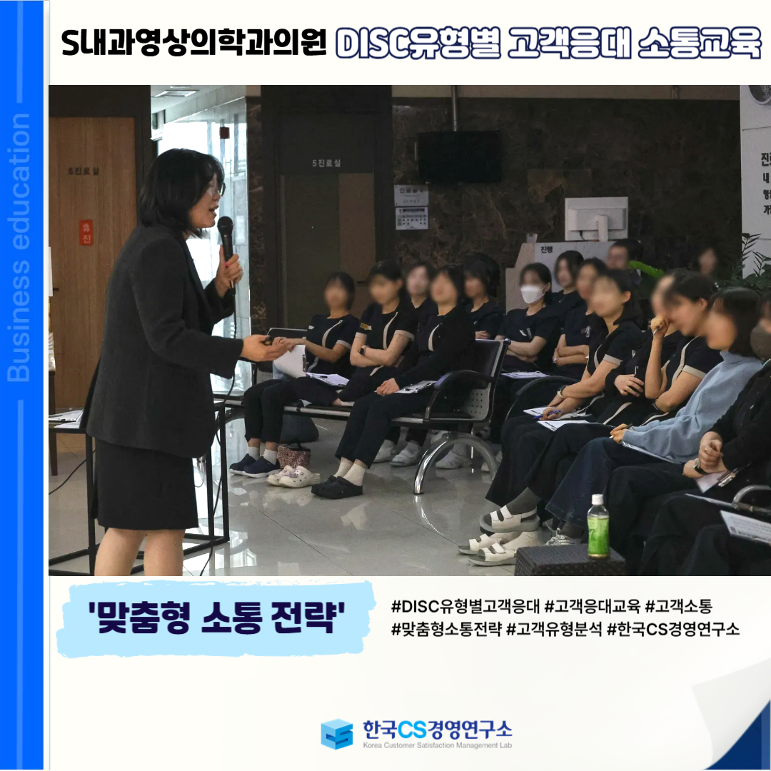 <S내과영상의학과의원>에서 DISC 유형 이해를 통해 고객 성향에 맞는 효과적인 병원 고객응대 소통 역량을 강화하기 위해 'DISC유형별 고객응대 소통교육'을 진행했습니다.
