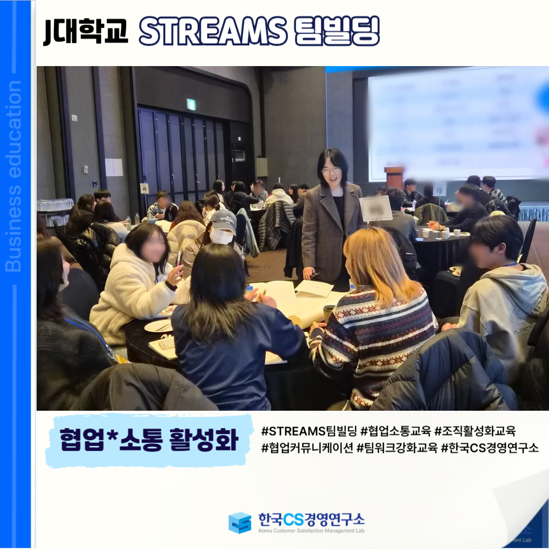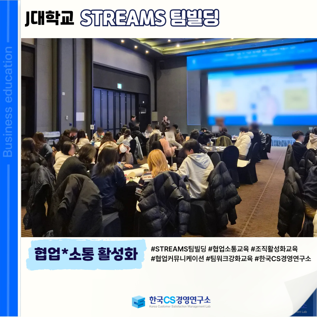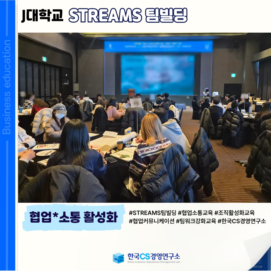 <J대학교>에서 '협업*소통 활성화'를 위한 위한 <STREAMS 팀빌딩교육>을 진행했습니다.