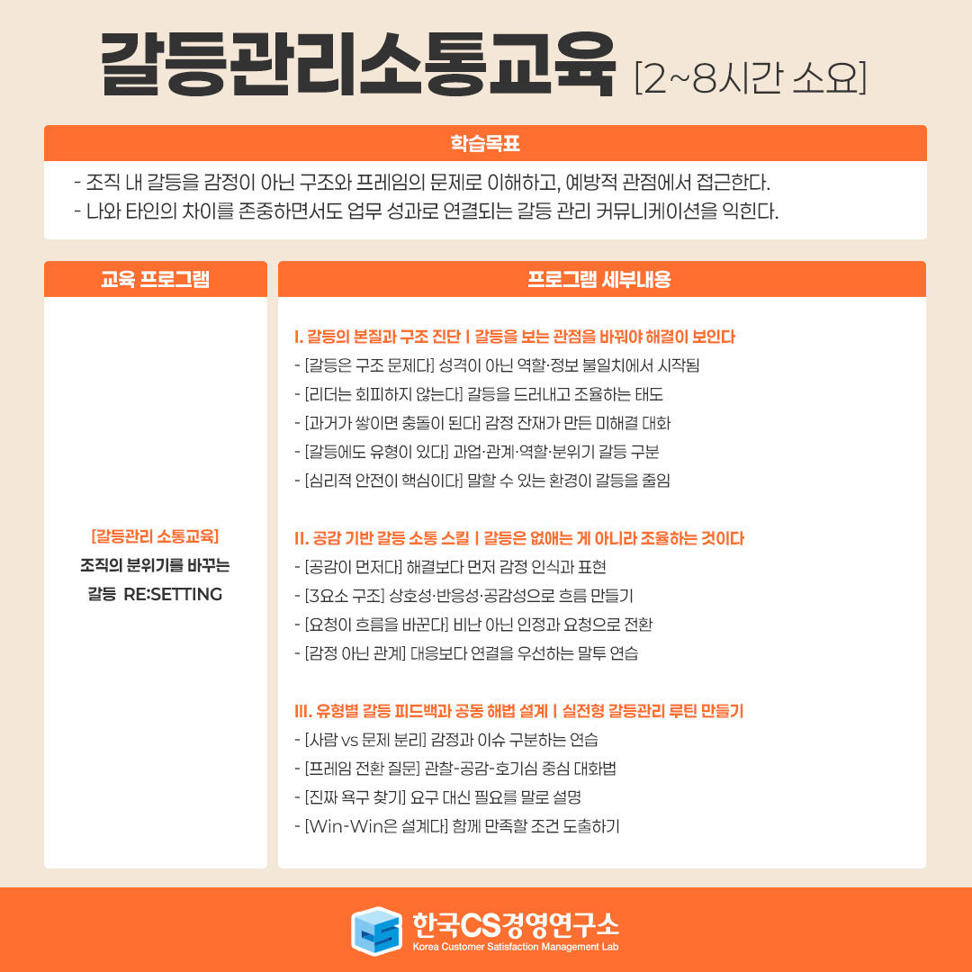 [갈등관리교육] 감정 아닌 구조의 문제, 똑똑한 조직 커뮤니케이션 전략! 한국CS경영연구소