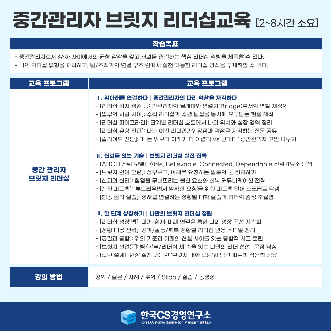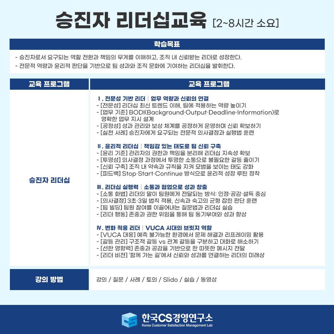 한국CS경영연구소의 승진자 리더십 교육은