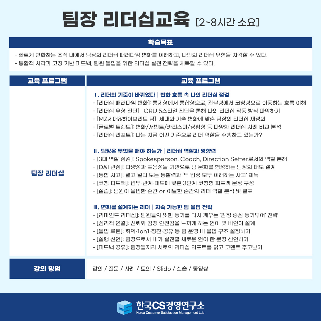 [승진자리더십교육] 일은 익숙하지만 리더는 처음인 당신에게 필요한 변화_한국CS경영연구소