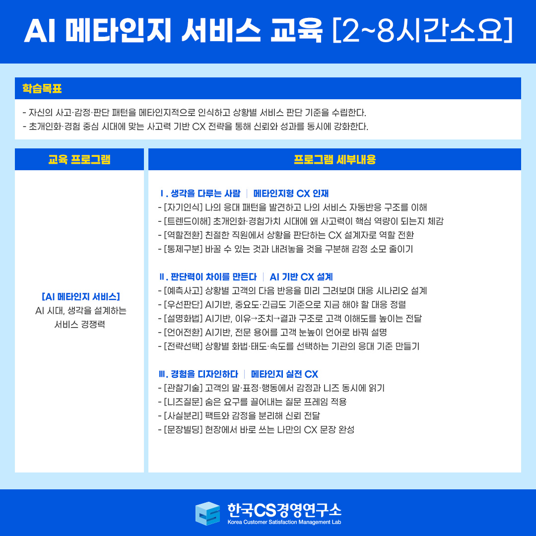 [CS교육] AI활용 메타인지 서비스 고객응대 교육 전략_한국CS경영연구소