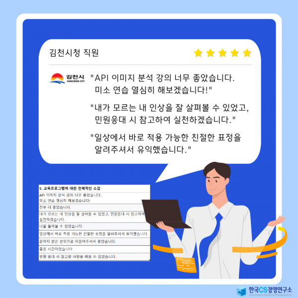 "내가 모르는 내 인상을 잘 살펴볼 수 있었고, 민원응대 시 참고하여 실천하겠습니다."