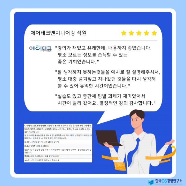 교육 진행 후 에어테크엔지니어링에서 이연주 강사님께 교육 후기 보내주셨습니다.