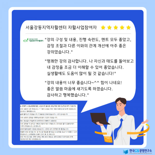 서울강동지역자활센터와 한국CS경영연구소가 소중한 인연을 맺었습니다.