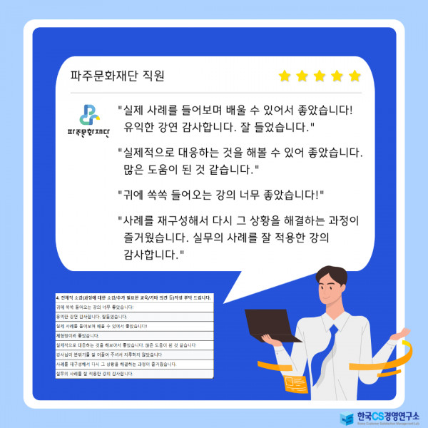 파주문화재단과 한국CS경영연구소가 소중한 인연을 맺었습니다.