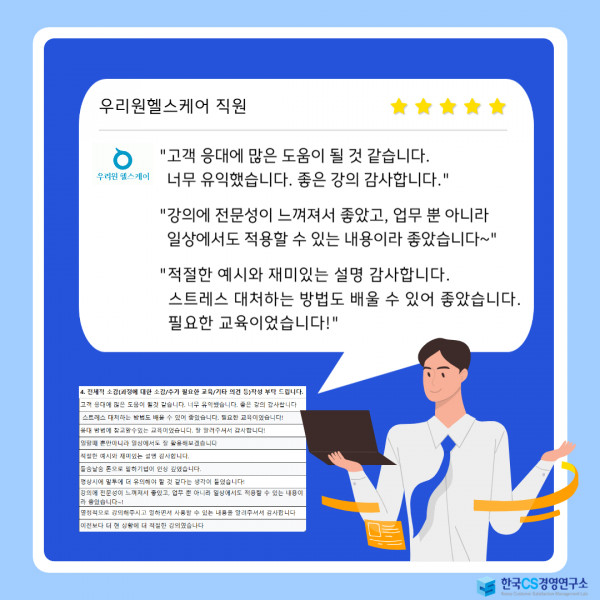 "고객 응대에 많은 도움이 될 것 같습니다. 너무 유익했습니다. 좋은 강의 감사합니다."
